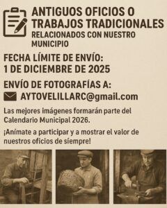 Los participantes podrán enviar sus fotografías hasta el 1 de diciembre de 2025. Las imágenes deben ser remitidas al correo electrónico aytovellilarc@gmail.com, donde serán recibidas y evaluadas. Las mejores propuestas formarán parte del Calendario Municipal 2026, que este año estará dedicado precisamente a los oficios tradicionales que han marcado la identidad del pueblo.