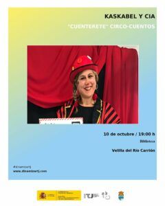 El próximo 10 de octubre a las 19:00 horas, la Biblioteca de Velilla del Río Carrión se llenará de fantasía, humor y emoción con el espectáculo “Cuenterete” de la compañía Kaskabel y Cía. Esta original propuesta mezcla el arte del cuentacuentos con el universo del circo, ofreciendo una experiencia divertida y educativa para toda la familia.