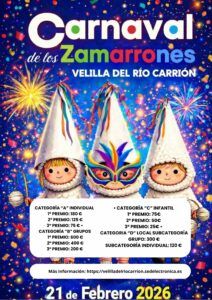 Velilla del Río Carrión se prepara para vivir una de sus citas festivas más esperadas con la celebración del Carnaval de los Zamarrones, que tendrá lugar el sábado 21 de febrero de 2026. Una jornada llena de color, tradición y diversión que volverá a convertir las calles del municipio en un gran escenario festivo.